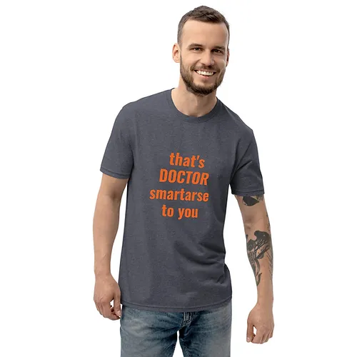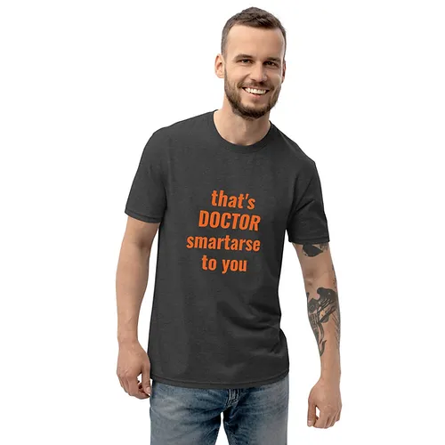Unisex recycled t-shirt (Dr Smartarse, orange text)