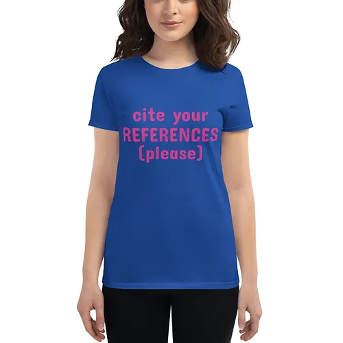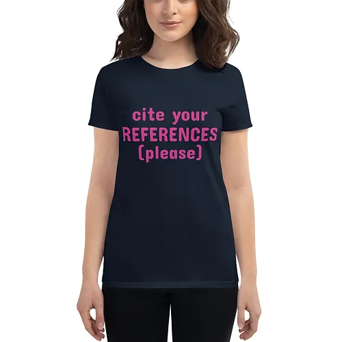 Women’s short sleeve t-shirt (Cite Your References, pink text)