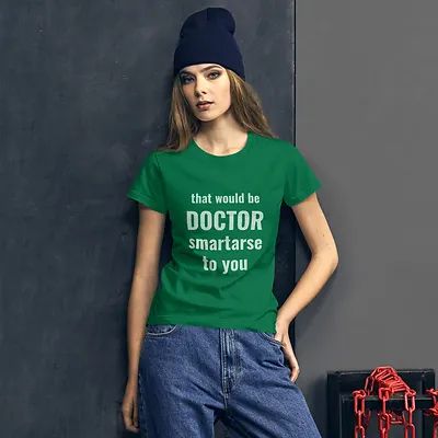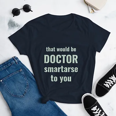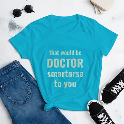 Women’s short sleeve t-shirt (Dr Smartarse, grey text)